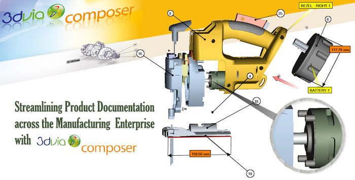 3DVIA Composer helps manufacturing, service and product training departments build better and up-to-date product documentation by working directly with 3D design data.